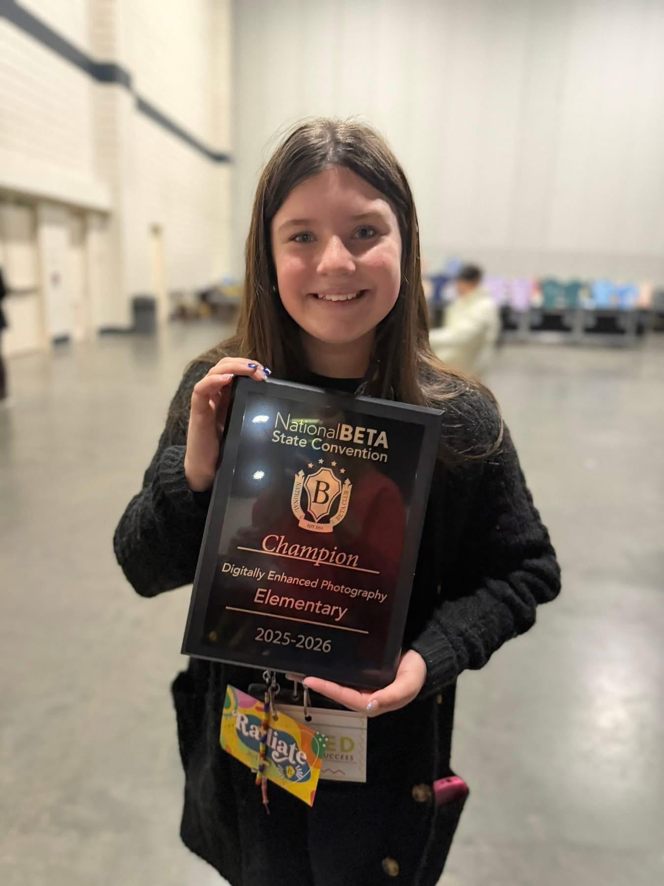 Our Junior Beta Club attended the State Beta Club Convention this month in Myrtle Beach. They competed in different categories to showcase their many talents. The following students placed in their respective categories and have the opportunity to compete at the National Convention this summer in Nashville. Congratulations!